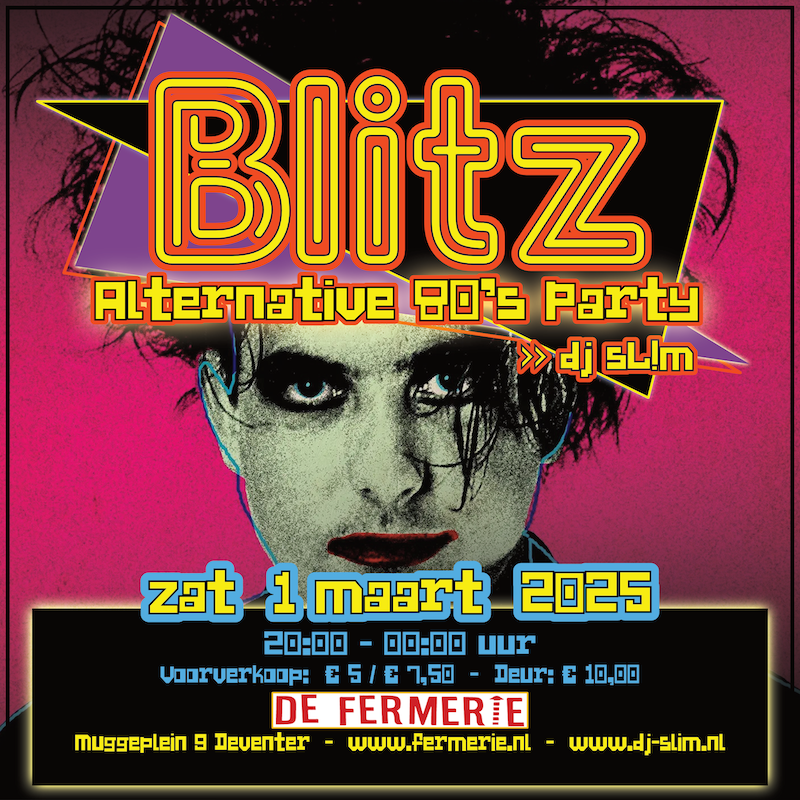 Op de BLITZ Party kun je van 20:00 tot 0:00 uur dansen op DJ sL!m’s unieke mix van jaren 80 alternatieve pop en new wave muziek.