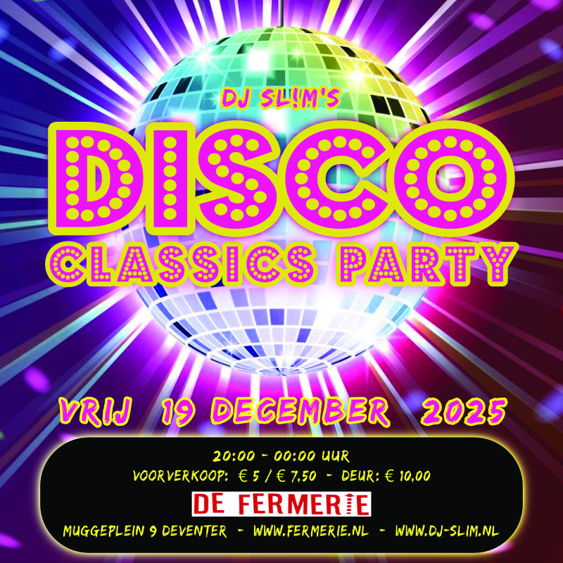Op de Disco Classics Party kun je van 20:00 tot 0:00 uur dansen op DJ sL!m’s “guilty pleasures”: