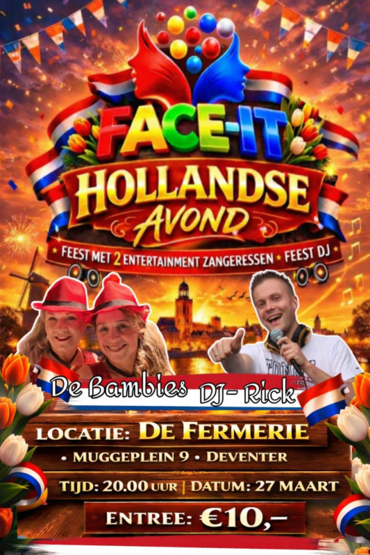 Face-It strijkt op vrijdagavond 27 maart neer in de De Fermerie voor een echte Hollandse avond.
