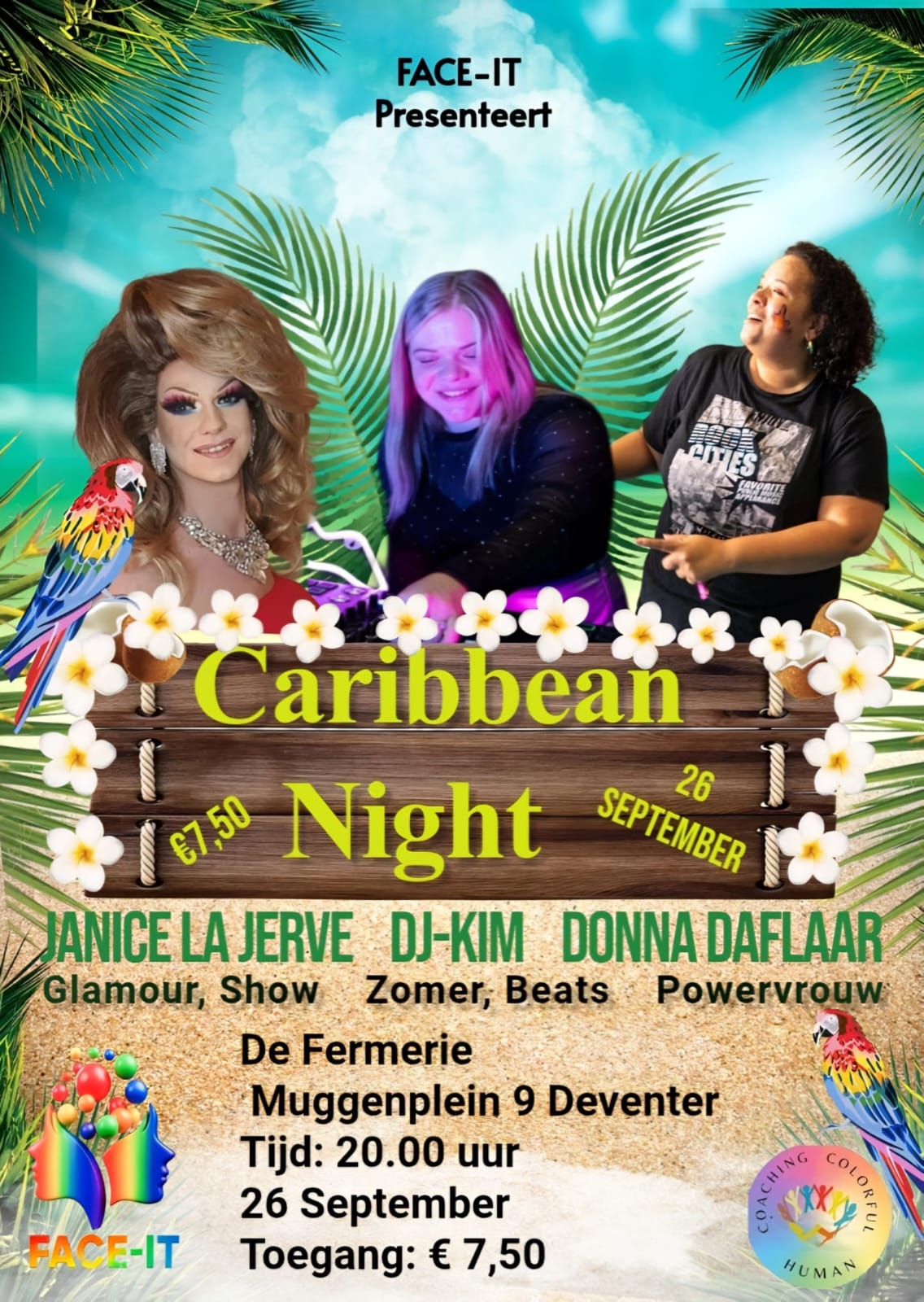 Na al het Pride geweld de afgelopen maanden pakt Face-It uit met de “Caribbean night”!!